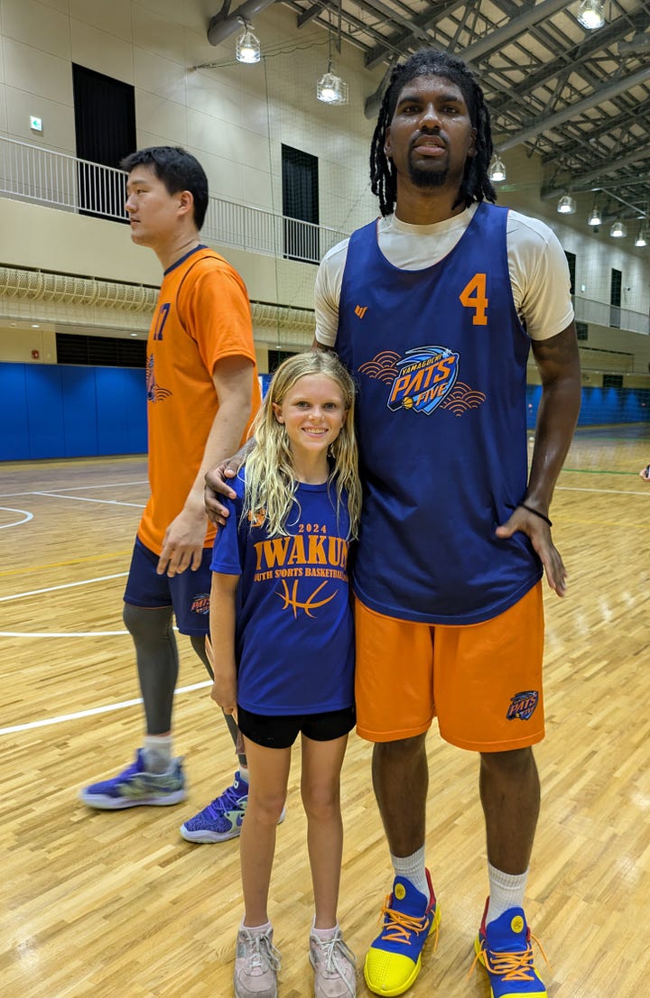 On Tuesday night M got to play ball with the local professional basketball team. They did some drills together and even scrimmaged, kids vs pros. The kids didn’t do nearly as much dunking as the pros, but they still had a good time.
